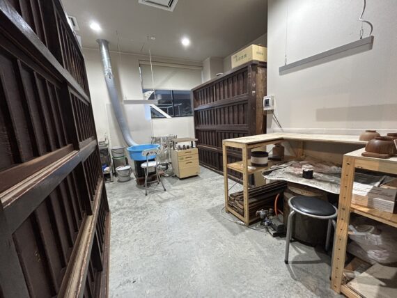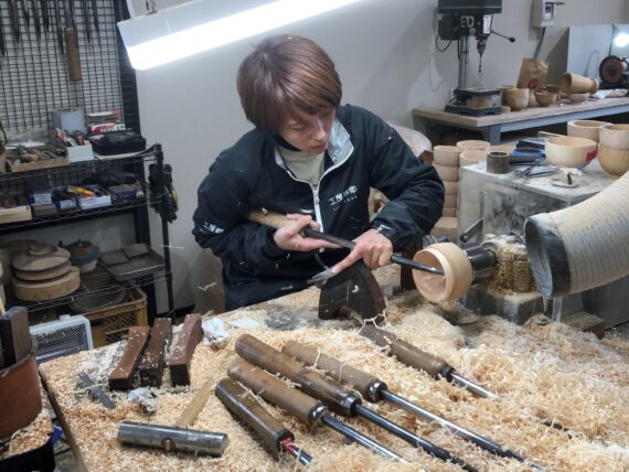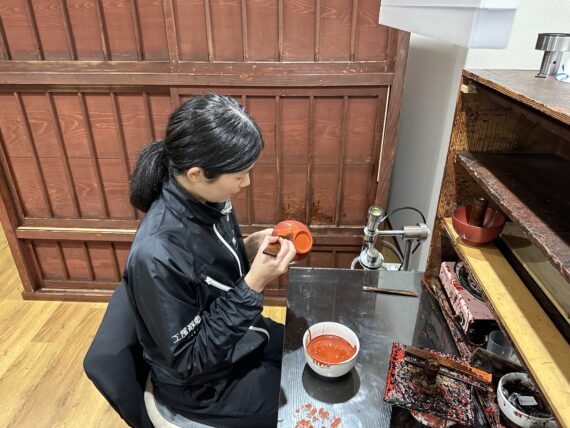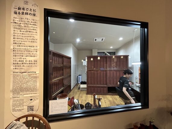 木地挽き、漆塗り、蒔絵の各工程がすべて揃っている珍しい工房で、